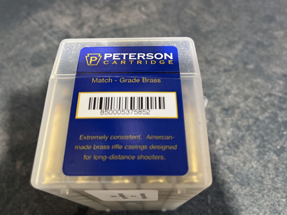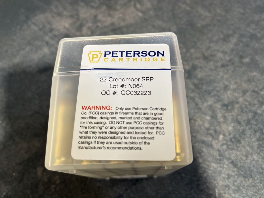 Peterson 22 Creedmoor brass, small rifle prime , Price per box of 50. Arriving this week, limited stock. order now.