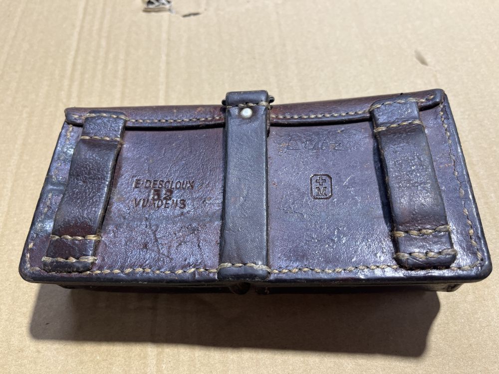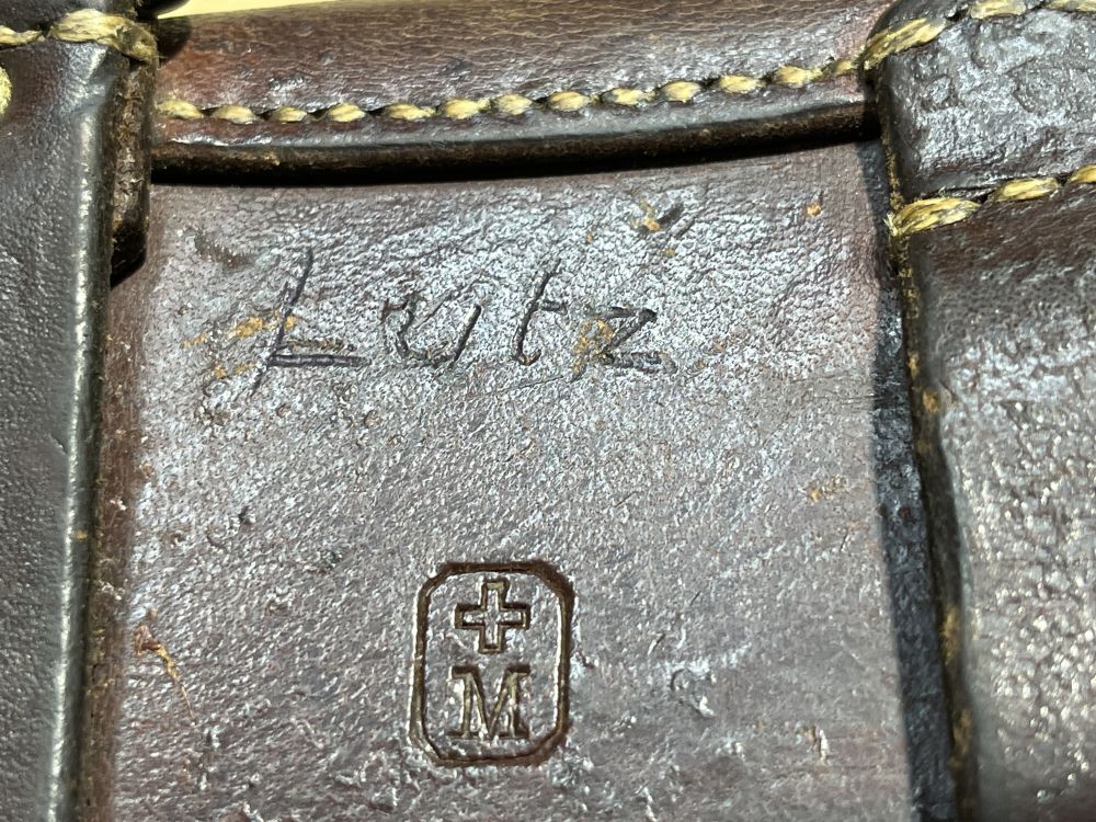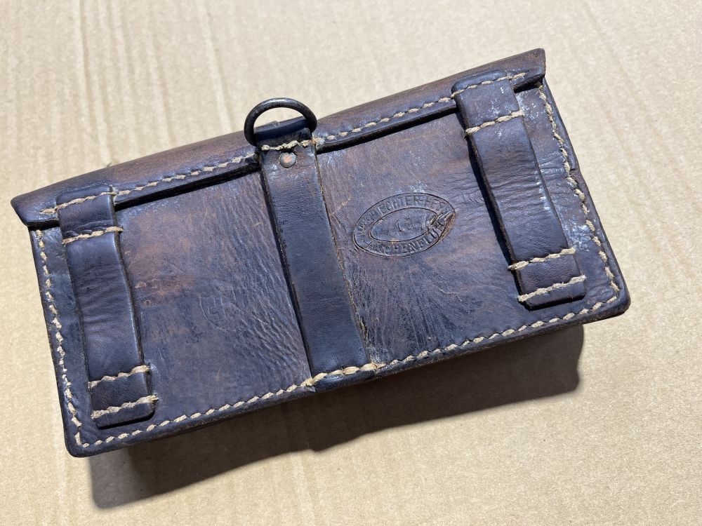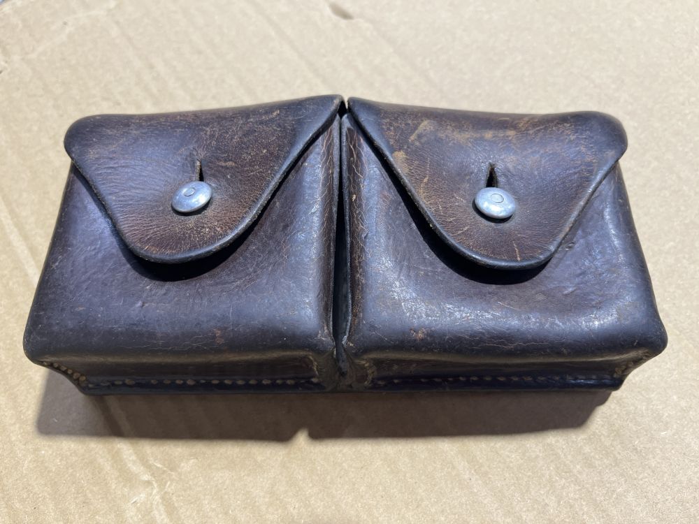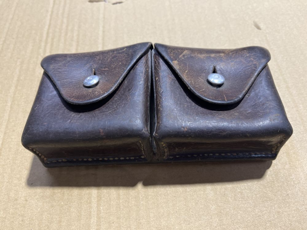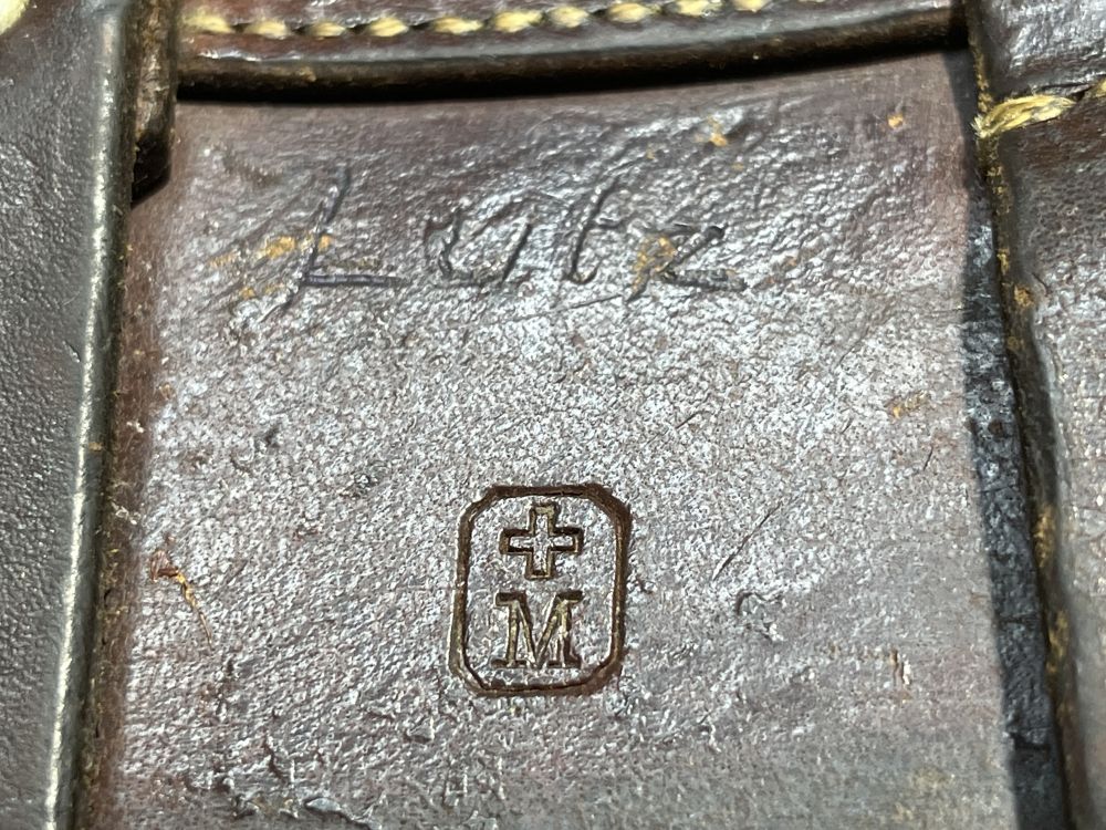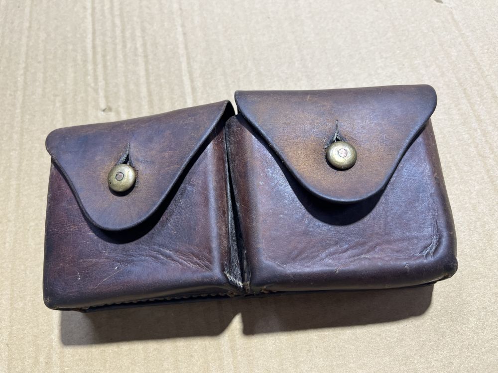 This is a post ww2 canvas with brass fittings semi-auto holster. This is the larger of the two holster designed for the 9mm Hi-Power, it accomodate 1 spare magazine & cleaning rod insisted the holster.